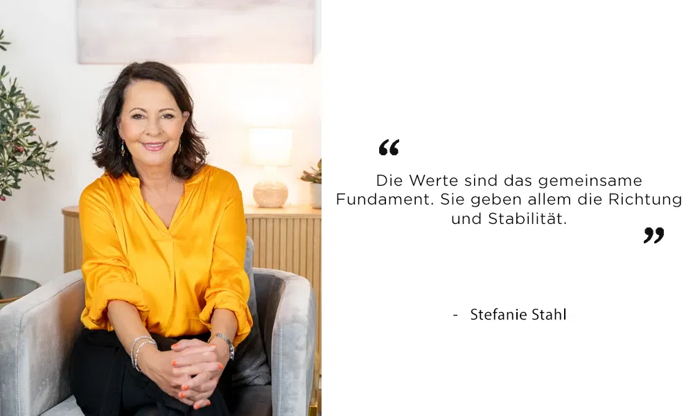 “Die Werte sind das gemeinsame Fundament. Sie geben allem die Richtung und Stabilität. Es macht keinen Sinn, wenn einer von einer großen Familie träumt und der andere nicht. Dann fehlt da die Wertegemeinschaft „Familienleben“. Was ist unser Lebensstil, welche Zukunftsvision teilen wir: Ohne diese Übereinstimmung wird es richtig schwierig.”