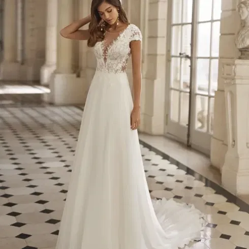 Das A-Linien-Brautkleid ist ein echter Allrounder und steht fast jeder Figur ausgezeichnet. Durch den leicht ausgestellten Rock entsteht eine elegante Silhouette – und das ganz ohne Einschränkungen bei der Bewegungsfreiheit. Ob romantisch mit Spitze, zart mit Chiffon oder edel mit Satin: Die A-Linie bietet unzählige Möglichkeiten in Stoffwahl und Ausschnittform. Kein Wunder also, dass sie bei Bräuten so beliebt ist, die sich eine zeitlose und stilvolle Ausstrahlung wünschen. In einem A-Linien-Brautkleid wirst du an deinem großen Tag garantiert strahlen!