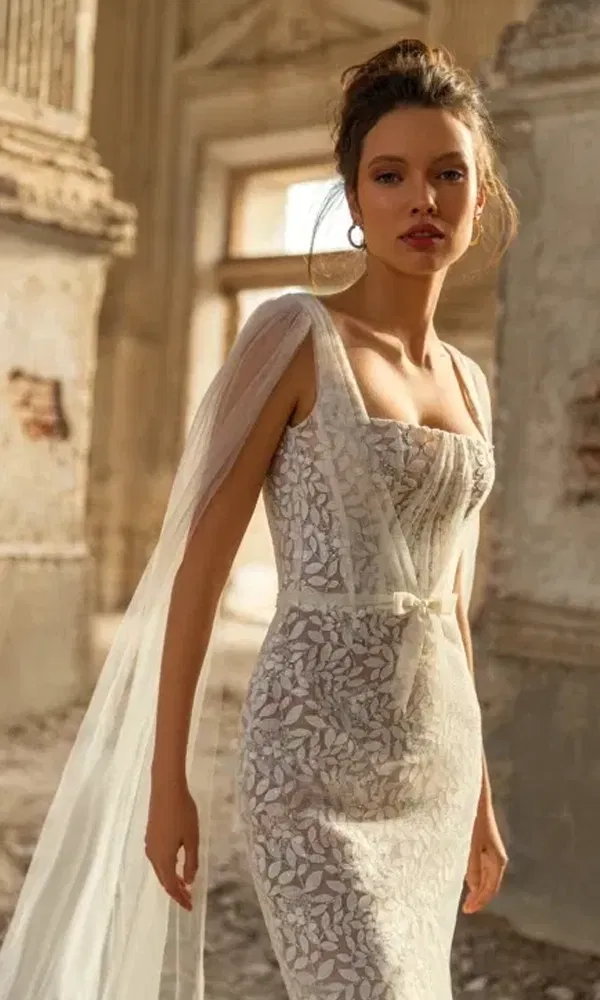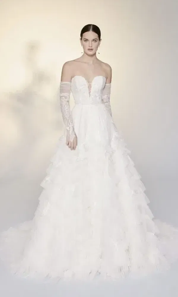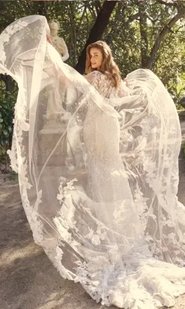 Capes, Bridal Jackets und abnehmbare Ärmel – so viele Styling-Variationen gab es selten! Trage zum Beispiel ein Cape während der Zeremonie, ein cooles Bridal Jacket beim Fotoshooting, zarte abnehmbare Ärmel zum Dinner – und verzichte beim Feiern komplett auf zusätzlichen Schnickschnack. So verwandelst du deinen Look im Laufe des Tages immer wieder, bleibst aber deiner Traumrobe treu.