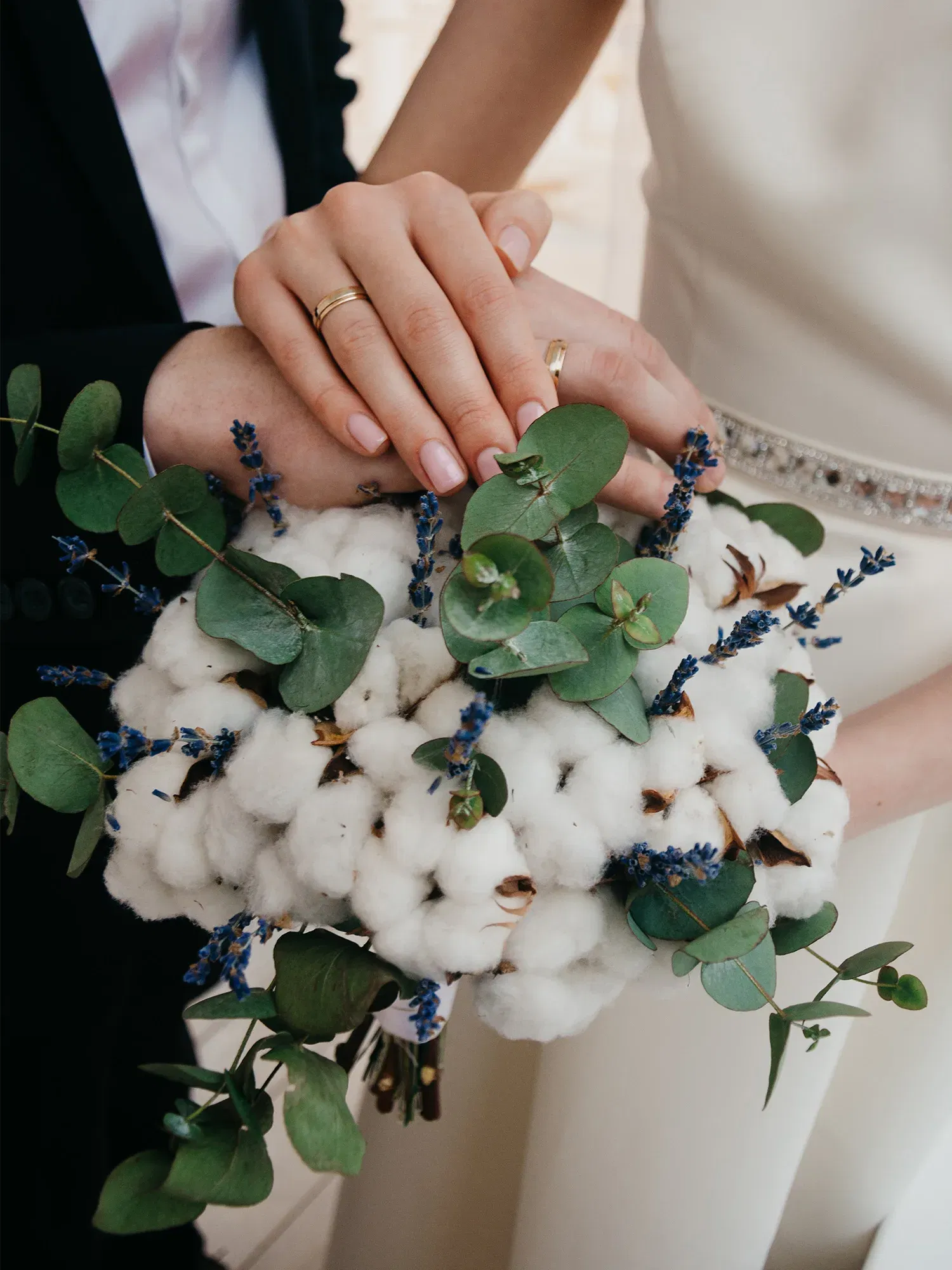 Glitzernd, elegant und weich – das ist der Federstrauß. Ihr heiratet im Boho-Stil? Dann reiht sich diese Alternative zum klassischen Brautstrauß perfekt in euer Hochzeitskonzept ein. Auch Pampasgras ist ein schönes Piece für eure ausgefallene Blumendeko und kann als Stilbruch in dem Strauß ergänzt werden. Auch Federn gibt es in unterschiedlichen Farben und Variationen. Unser Tipp für einen Brautstrauß im Federlook: Färbt weiße Federn passend zu eurem Farbkonzept selbst ein, ein wunderschöner Hingucker im Blumenarrangement. Verwendet dazu Batik-Farben.