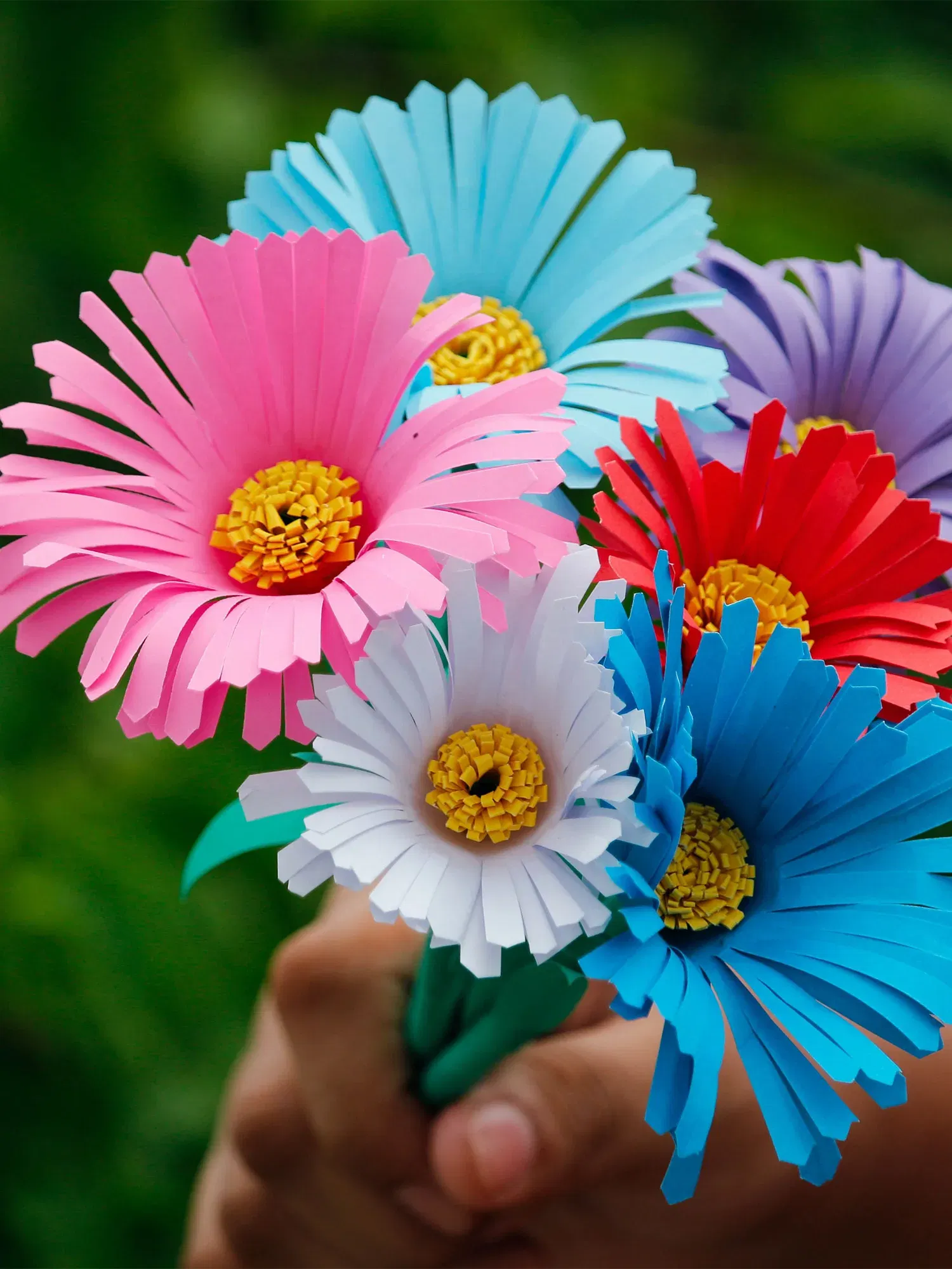 Blüten aus Baumwolle – zusammengesteckt und ergänzt um ein paar grüne Blätter ist dieser Strauß ein echter Hingucker und wirkt wunderschön zart.
