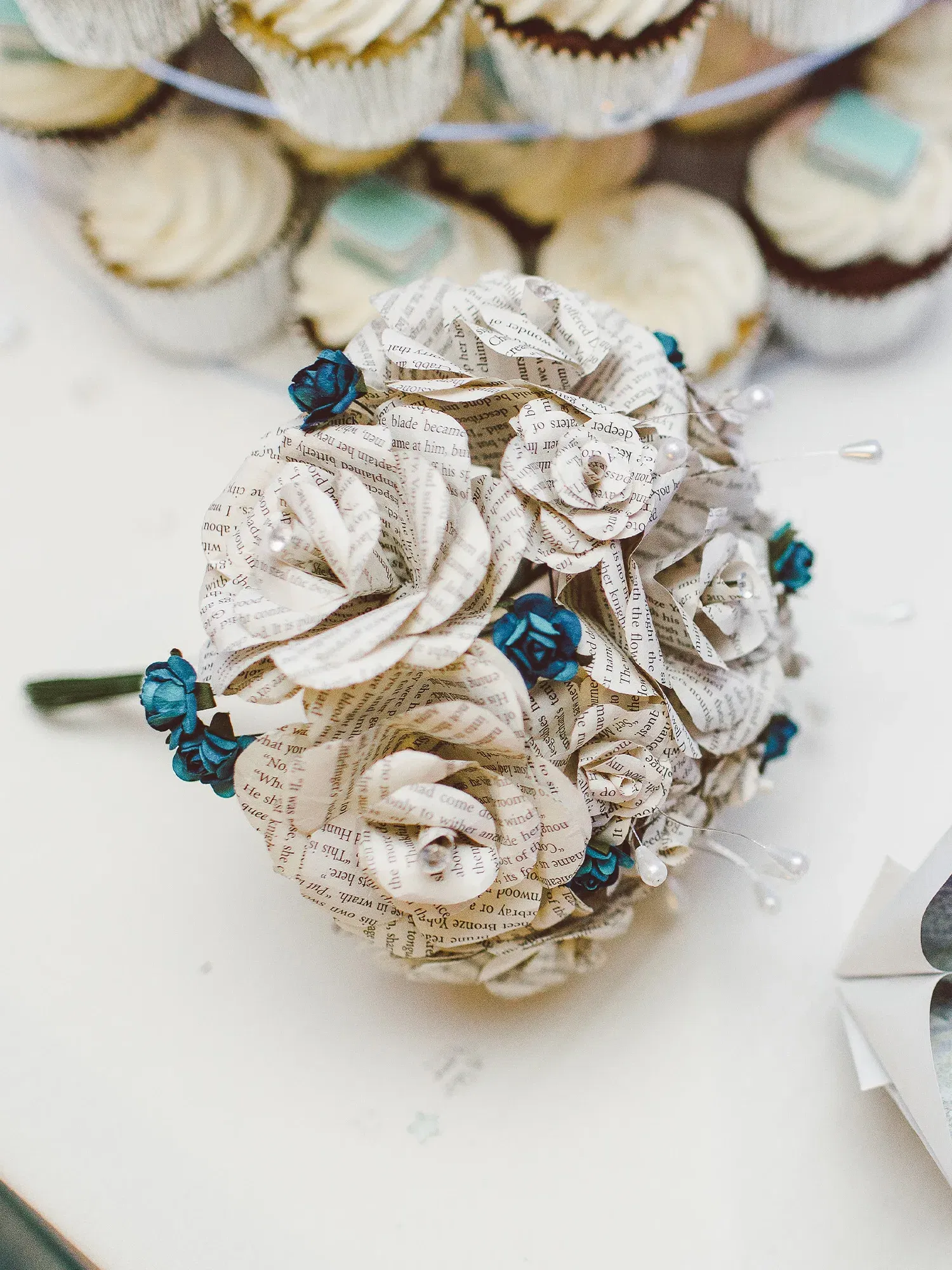 Etwas für die Ewigkeit – das sollte nicht nur die Liebe zu deinem Schatz sein, sondern auch dein liebstes Hochzeitsaccessoire: Der Brautstrauß aus Papierblüten. Ergänzt um weiße Samtbänder und etwas grün entsteht ein außergewöhnlich schöner Brautstrauß. Besonders nostalgisch wirken die Blüten aus Zeitungspapier von Zeitungen, die beispielsweise an eurem Jahrestag erschienen sind. Übrigens auch eine tolle Idee für euren JGA, um gemeinsam mit den Liebsten den eigenen Brautstrauß und Sträuße für die Bridesmaids zu kreieren.