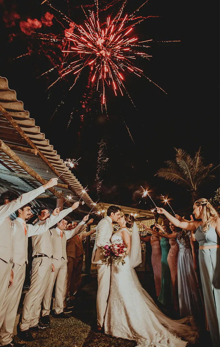 Wunderkerzen sind echte Highlights und sorgen für magische Augenblicke. Ob groß oder klein, klassisch oder farbig: Die funkelnden Lichter verleihen eurem Auszug oder einem späteren Programmpunkt eine Extraportion Romantik. Für einen zusätzlichen Wow-Effekt gibt es spezielle Brillen, die die Funken in kleine Herzchen verwandeln. Besonders in den Abendstunden entstehen so stimmungsvolle Bilder voller Emotionen.
