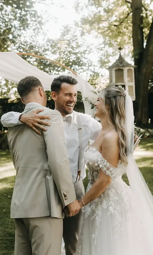 „Verlasst euch dabei auf euer Bauchgefühl. Das gilt natürlich beidseitig. Im persönlichen Gespräch solltet ihr herausfinden, ob der Trauredner oder die Traurednerin eure Vorstellungen verwirklichen kann, authentisch und so emotional, wie ihr es möchtet. Wenn sich das Paar zu 100 % öffnen kann, wird es magisch! Das ist das Wichtigste. Gleichzeitig muss sich auch der Trauredner, die Traurednerin überlegen, ob die Wünsche des Hochzeitspaars umsetzbar sind. Für das Gespräch ist es wichtig, eure Vorstellungen für den großen Tag klar zu kommunizieren.“