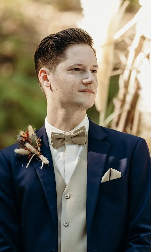 Gemeinsam mit einer Gruppe enger Freunde, die später auch bei der Hochzeit dabei waren, blieb Christoph in Wien. „Wir haben eine Weinwanderung gemacht – das bedeutet, man spaziert von einem Heurigen zum nächsten, trinkt Wein, isst typische Wiener Spezialitäten und genießt einfach den Tag.“ Die Stimmung wurde mit jeder Station ausgelassener. „Zwischen den Heurigen waren kleine Spaziergänge durch die Weinberge – und je länger der Tag dauerte, desto lustiger wurde es natürlich“, sagt Christoph lachend. „Es war genau das richtige Maß an Spaß, Genuss und guter Gesellschaft.“