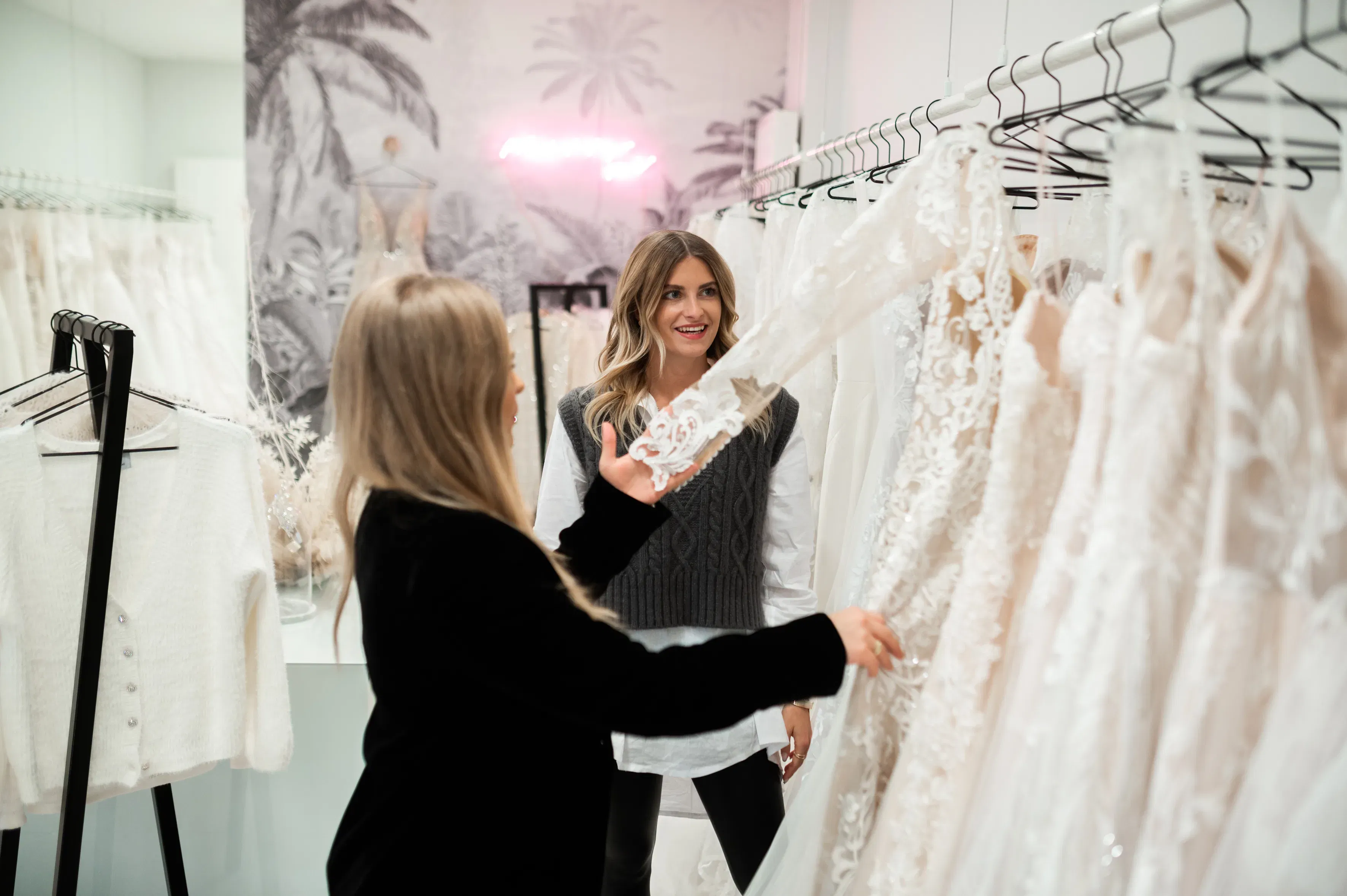 Die Bridal Stylistin begleitet die Braut durch den Brautmodenladen für einen ersten Überblick über alle Hochzeitskleider und die Brautkleid-Stile. Welches Modell springt der Braut gleich ins Auge?