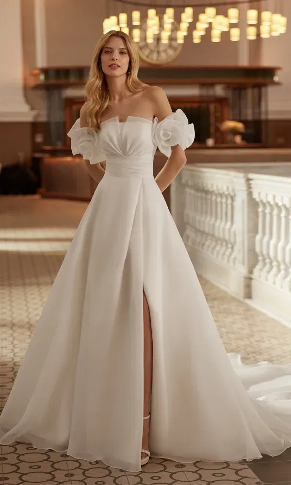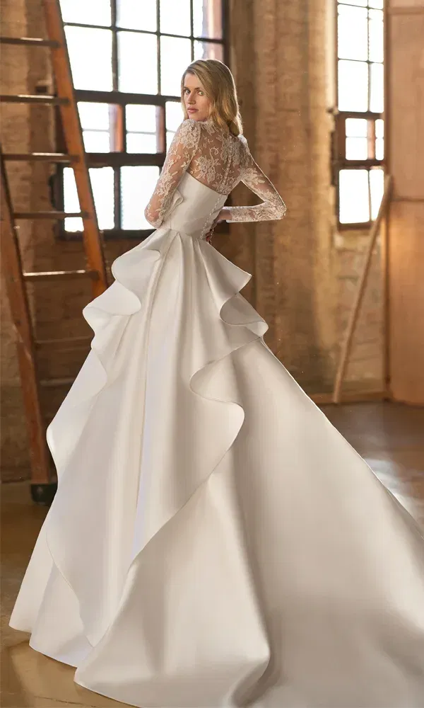 Mit abnehmbaren Schleppen, Röcken oder Ärmeln lässt sich ein Look in Sekundenschnelle verändern. Perfekt für alle Bräute, die zum Beispiel zur Trauung etwas anderes tragen möchten als zum Fest.