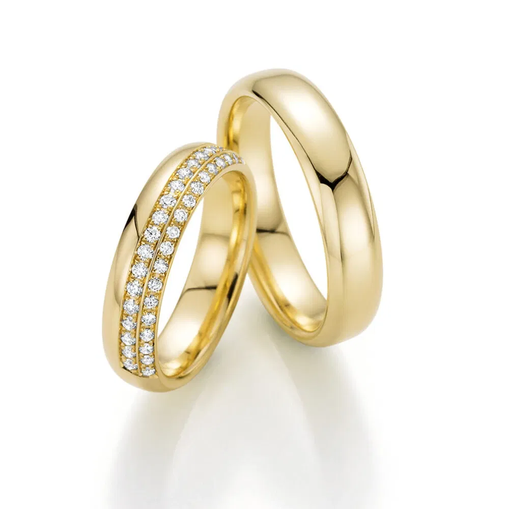 Gelbgold ist vielleicht die bekannteste Goldfarbe. Der gelbe Schimmer verleiht ihr eine warme Ausstrahlung. Gelbgold passt zu jedem Hautton und ist eine beliebte Goldnuance für Trauringe.