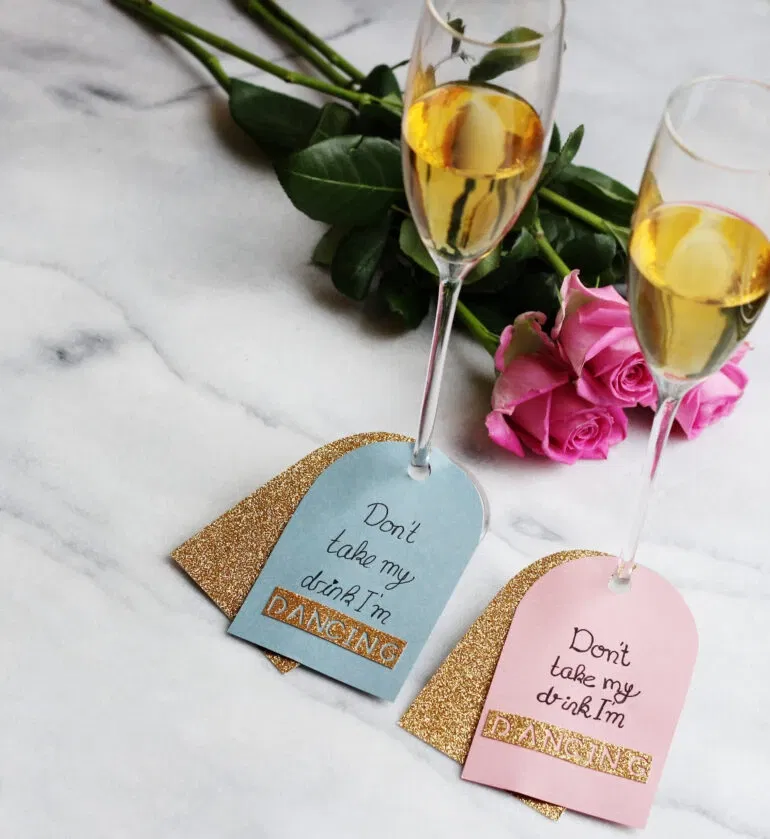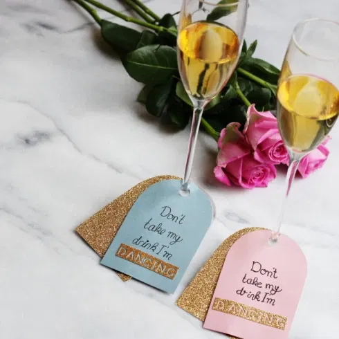 Don’t take my drink, I’m dancing: Wer kennt es nicht, sobald man auf die Tanzfläche verschwindet, ist das noch halbvolle Getränk auch schon weg. Für dieses Problemchen haben wir eine kreative Lösung gefunden, die nicht nur praktisch ist, sondern auch noch superstylisch. Kreiert eure eigenen Hangtags für Sektgläser, Weingläser und Co. mit coolen Sprüchen.
