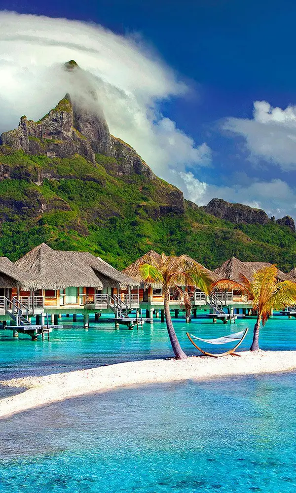 Wenn ihr auf der Suche nach einem außergewöhnlichen Traumziel für eure Flitterwochen seid, könnte Bora Bora in Französisch-Polynesien genau das Richtige für euch sein. Ihr könnt hier in einem luxuriösen Überwasser-Bungalow übernachten, wo ihr morgens mit Blick auf den Ozean aufwacht. Genießt eure eigene Terrasse und nehmt gemeinsam ein Bad im Meer, das direkt unter eurem Bungalow liegt.