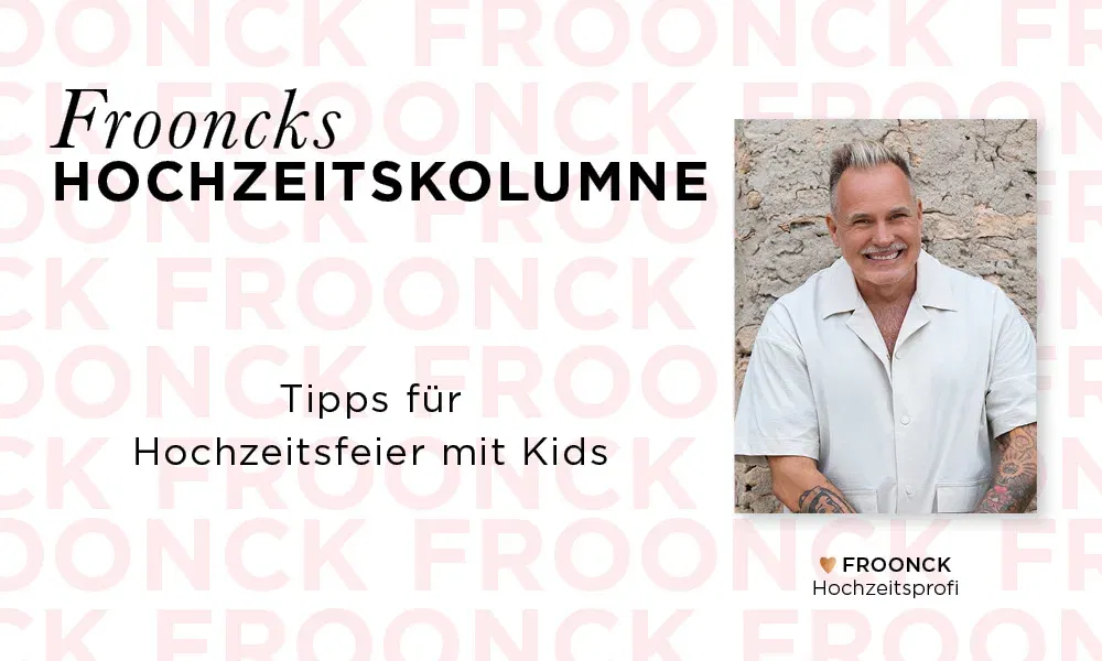 Kinder bringen Leben in eure Hochzeit, aber sie können auch für unerwartete Unterbrechungen sorgen. Viele Brautpaare fragen sich bei der Hochzeitsplanung, ob sie die Kinder der Gäste einladen sollten oder ob eine kinderfreie Hochzeit die bessere Option ist. Wedding-Planer Froonck gibt euch hilfreiche Tipps für beide Möglichkeiten.