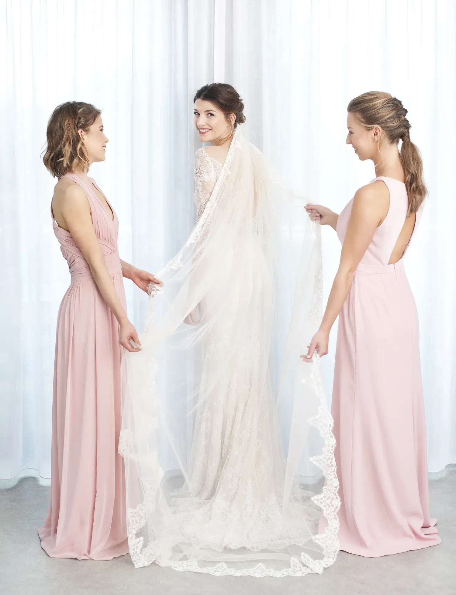 Der Hochzeitstrubel ist schon aufregend genug und Stress kann wirklich niemand gebrauchen. Plan also ein großzügiges Zeitfenster von etwa drei Stunden fürs Getting-ready ein. So habt ihr genügend Zeit, euch in Ruhe von den Profis stylen zu lassen, ein bisschen zu feiern und die Vorfreude so richtig zu genießen.