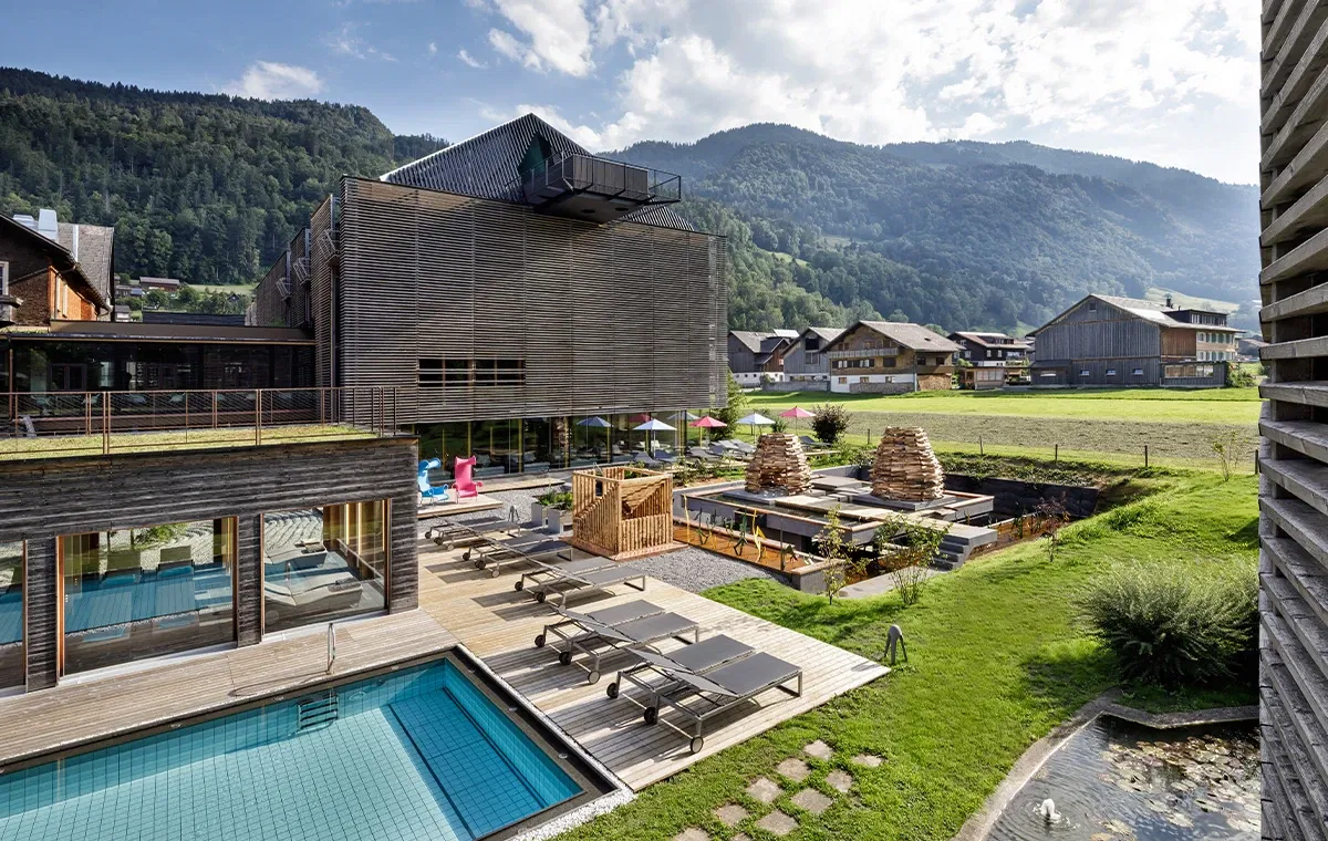 Auch der Wellnessbereich im GAMS Hotel Vorarlberg trägt eine ganz eigene Handschrift: Das sogenannte „Paaradies“-Spa ist ein Refugium nur für Paare. Ob im Onsen-Becken, in der Sauna oder im schwebenden Sky-Pool mit Blick über Bezau – jede Ecke ist auf Ruhe, Nähe und Entspannung ausgerichtet. Paarmassagen bei Kerzenschein runden das Verwöhnprogramm ab. Gäste genießen zudem das Wellness-Paket „Wolke 7 zu zweit“: eine Badezeremonie in mystischem Ambiente mit Abschluss auf dem Rooftop-Sky-Pool, Entspannung im privaten Dampfbad sowie ein Reinigungsritual im Hammam mit anschließender Ruhezeit.