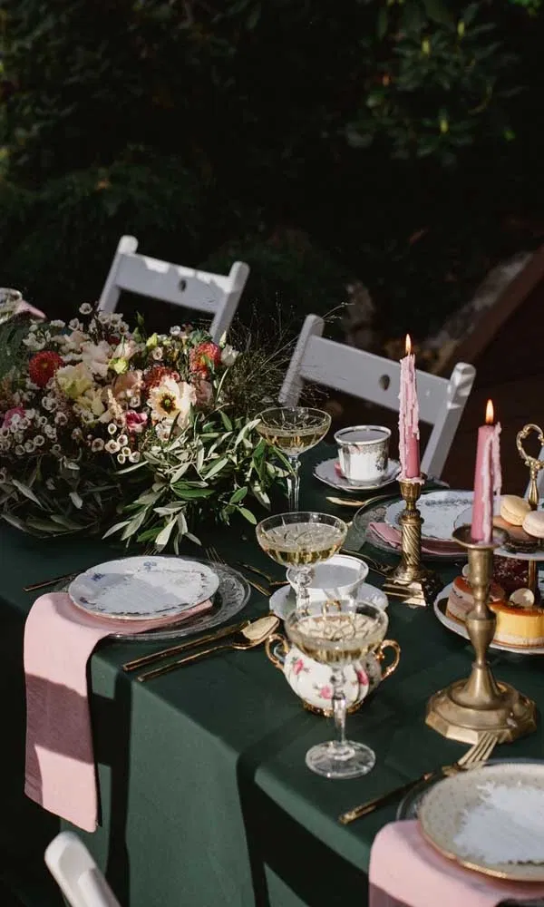 Ladet eure Gäste zur Tea Time ein und serviert kleine Leckereien arrangiert auf edlen Etageren. Die Festtafel ist mit zartem Porzellan, goldenem Besteck, Kerzen, Blumen und Kristallgläsern gedeckt. Pastellfarben, zarte Leinenstoffe und Streublumen-Muster im Retro-Chic erinnern an vergangene Zeiten.
