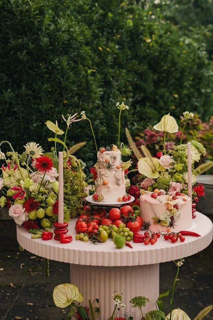 Liebt ihr ein bisschen Nostalgie? Gute Nachrichten: Die 80er-Jahre sind zurück. Denkt an Torten mit viel Buttercreme, Schleifen, Girlanden und sogar das klassische Brautpaar obenauf. Es ist ein kleines bisschen kitschig, aber genau deshalb sehr charmant. Auch die bekannten Spitzendetails und die altmodischen Säulen zwischen den Tortenschichten sehen wir jetzt wieder.