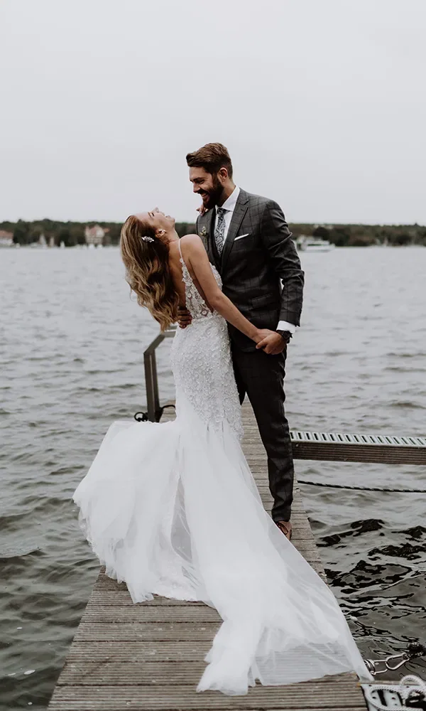 Mit einer freien Trauung am und einem Paar-Shooting auf dem Wannsee erlebten Anna (35) und Marcel (32) ihren Hochzeitstag. 60 Gäste feierten die Liebe der beiden in eleganter Atmosphäre. „Es war ein superschöner Tag“, schwärmen die Hochzeiter.