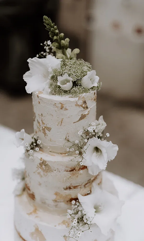 Die Nacht vor dem großen Tag verbrachte das Paar zuhause. Zur Hochzeits-Location brachen sie getrennt auf. Vor Ort musste die Braut noch einige Details erledigen, für die sie länger brauchte als erwartet. „Dadurch war ich zu spät mit dem Fertigmachen dran und der geplante Traubeginn um 14 Uhr verschob sich um fast eine Stunde. Das würde ich im Nachhinein unbedingt anders machen“, berichtet Anna. „Die Wartezeit draußen mit den Hochzeitsgästen hat sich schon gezogen. Umso schöner war es aber dann, als Anna endlich an der Seite ihres Vaters auf mich zukam – ein unvergesslicher Moment mit mega Wow-Effekt“, schwärmt Marcel. Die freie Zeremonie leitete sein bester Freund. „Für die Traurede hat er im Vorfeld unsere Familien und FreundInnen befragt und einiges recherchiert – richtig viel Aufwand mit einem ganz tollen, sehr persönlichen Ergebnis“, freut sich das Paar. Für die Auflockerung der Trauung mit einem Lied sorgten zwei weitere Freunde. „Die beiden haben extra einen Song mit unserer Geschichte komponiert – Wahnsinn!“, so die Hochzeiter begeistert.