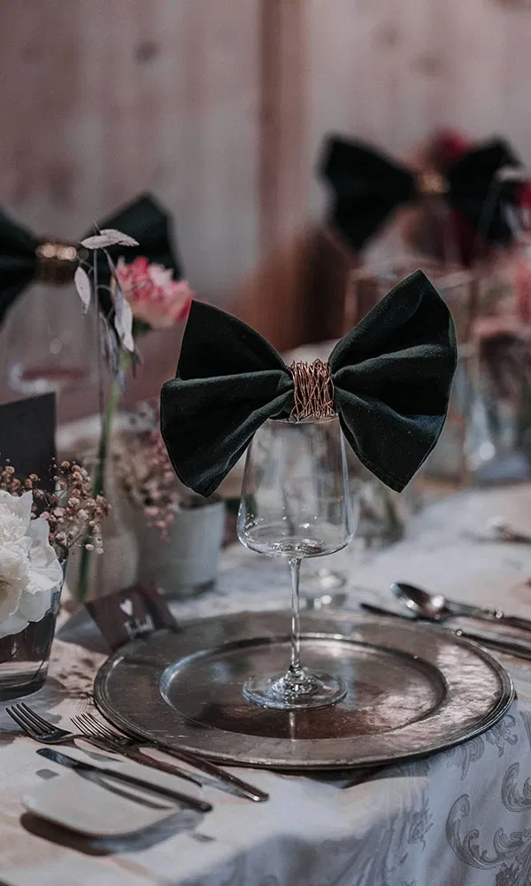 Neben der beeindruckenden Landschaft gab es noch einen Moment, der ihnen besonders im Herzen geblieben ist: ihr First Look. „Wir haben uns vor der Trauung an einem abgelegenen See getroffen, nur wir zwei“, erzählt Jil. „Dieser Moment, ihn dort zu sehen, ganz ohne Trubel, war unglaublich emotional.“ Dort, umgeben von den Bergen, tauschten sie auch ihre persönlichen Ehegelübde aus – ganz für sich allein. „Das war eine wunderbare Entscheidung“, sagt Steffen. „So konnten wir den Rest des Tages völlig entspannt mit unseren Gästen genießen, ohne Hektik, ohne Unterbrechungen.“
