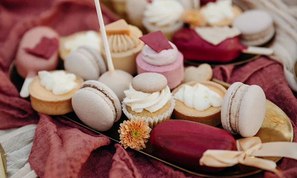 Bei der Wahl ihrer Dienstleister setzten Melanie und Christoph auf eine Mischung aus Empfehlungen und Online-Recherche. „Entweder haben wir die Anbieter empfohlen bekommen oder sie zufällig im Internet gefunden.“ Besonders hilfreich waren dabei Bewertungen und Social Media. „Gerade auf Instagram bekommt man schnell ein Gefühl für den Stil, vor allem bei FotografInnen“, sagt Melanie. „Das Essen haben wir nicht extra verkostet“, erzählt Christoph. „Wir wussten, dass das Weingut eine tolle Küche hat.“ Dafür durften sie sich bei den Süßigkeiten und Desserts einmal quer durchprobieren. „Da war die Entscheidung dann umso schöner – und leckerer“, ergänzt Melanie lachend.
