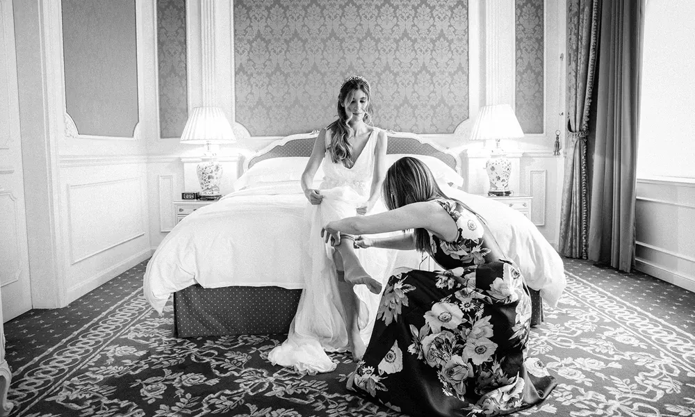 Der erste Blick des Paares, wenn Braut und Bräutigam sich zum ersten Mal vor der Zeremonie sehen, ist sehr intim und emotional. Dazu kommen ungeplante Momente: die kleinen spontanen Augenblicke, die die Hochzeit so besonders machen. Das sind ein Lächeln, ein flüchtiger Blick – sie fangen die wahre Stimmung des Paares ein.