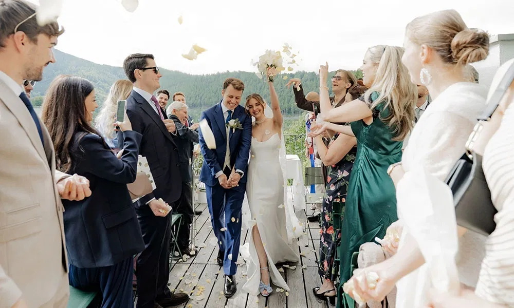 Für Julia stand eines fest: Der Augenblick, als sie ihren Mann zum ersten Mal vorn stehen sah – im eleganten Anzug, bereit für die Trauung – war unvergesslich. „Als ich mit dem Lied ‚Fallen‘ von Lauren Wood eingezogen bin, ist alles um mich herum verschwommen. In diesem Moment gab es nur uns beide“, erinnert sie sich. Es war der wohl emotionalste Moment des Tages.