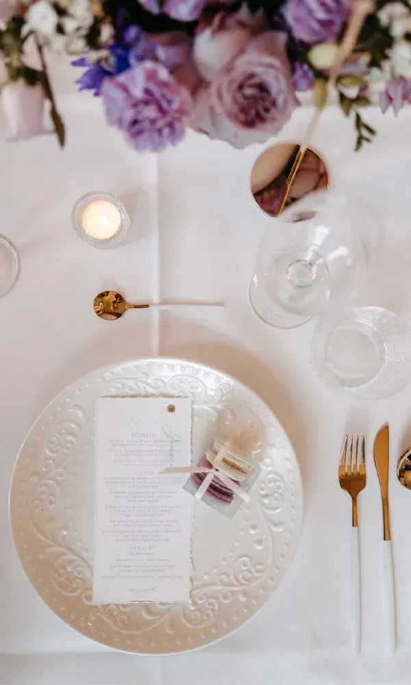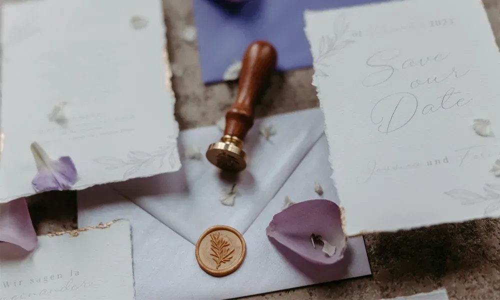 „Die häufigsten Bestandteile der Hochzeitspapeterie sind Save-the-Date-Karten, Einladungskarten sowie die Tages-Papeterie. Zur Tages-Papeterie zählen: Menü- und Getränkekarten, Platzkärtchen, Tischnummern sowie ein Sitzplan und ein Willkommensschild. Als letzter Punkt wird die Danksagungskarte beauftragt.“