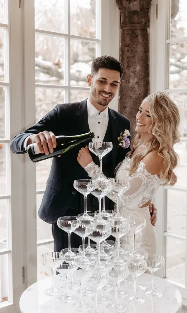 „Was gibt es Schöneres als nach dem Styling seinen Schatz wiederzusehen? Diese Zeit getrennt zu verbringen, macht es so besonders. Braut und Bräutigam bereiten ihr Getting-ready so vor, wie es ihnen am besten gefällt. Ob mit Champagner oder Whiskey, mit üppiger Blumendeko, der Lieblingsmusik, mit den besten Freunden und Freundinnen und mit Snacks.“
