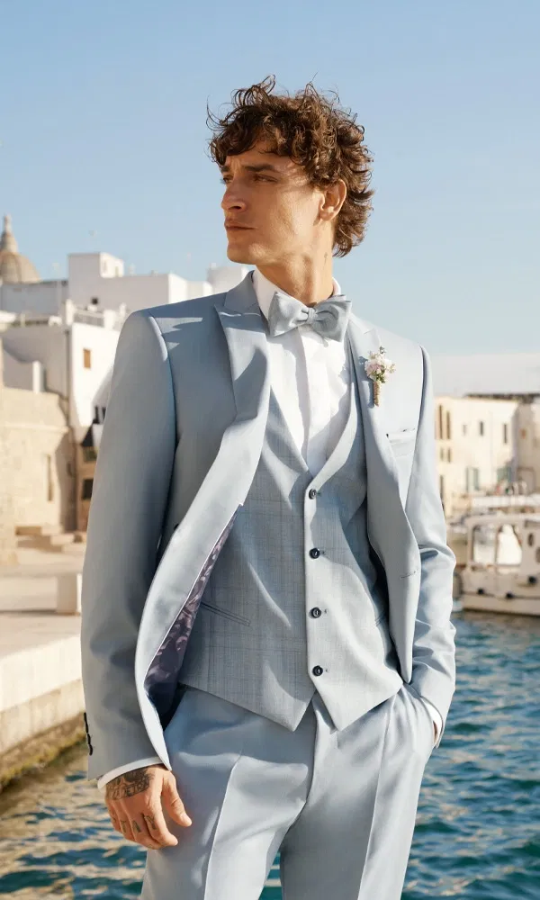 Suchen in BräutigammodeSanfte Töne: Der hellblaue Hochzeitsanzug