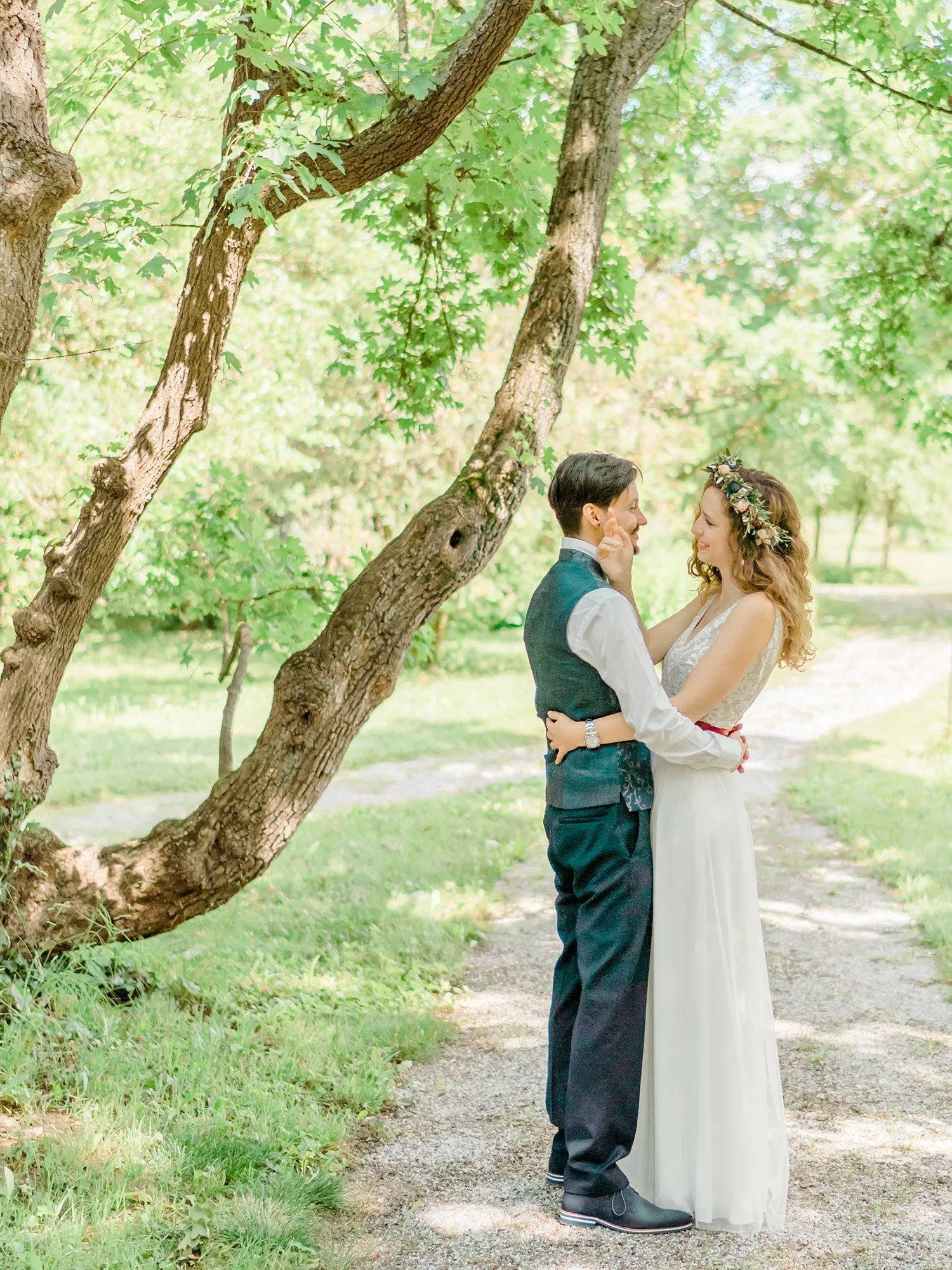 „Im Schlossgarten von Schloss Mühlbach am Manhartsberg feierten wir unsere Sommerhochzeit mit vielen Spielen. Bei Spikeball, Tischfußball und Nageln konnten sich unsere Gäste die Zeit vertreiben. Das Highlight am Nachmittag waren die ‚Bride‘s- and Groom‘s-Games‘. In verschiedenen Disziplinen wie Eierlauf, Sahne schlagen und Donut ohne Hände essen nominierten Michael und ich unsere Champions. Diese sammelten Punkte für Team Bride oder Groom. Die Sitzordnung gestalteten wir bewusst so, dass nicht Paare zusammensaßen sondern Personen, die bestimmte Themen verbinden. Jedem Gast schrieben wir ein persönliches Briefchen mit Ideen für Gesprächsthemen. Das kam super an.“