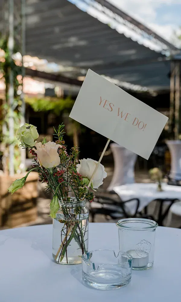 Gleich nach dem Antrag gingen die Hochzeitsplanungen mit der Location-Suche los. „Gefühlt habe ich mir alle Hochzeitslocations in und um München angeschaut“, lacht Lara. Aus verschiedenen Gründen schieden die Locations immer wieder aus – oft war die Gästeanzahl von 120 zu hoch, mal fehlte ein schöner Außenbereich, mal konnte man den Ort nicht exklusiv buchen. Als ideale Hochzeits-Location stellte sich schließlich die Villa Flora in Sendling-Westpark heraus. „Hip und keine Spur spießig, lässig und gleichzeitig elegant – der Stil passte perfekt zu uns“, freut sich Lara. „Außerdem gibt es dort einen separaten Raum für die Kinder zum Schlafen. So konnten die Eltern bis in den nächsten Morgen mit uns feiern“, ergänzt Flo.