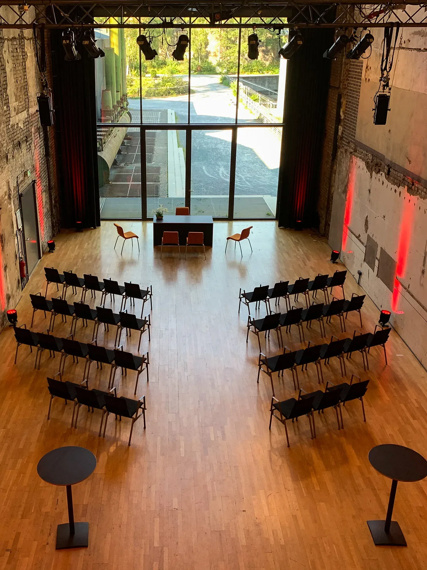 Der Lokschuppen in Bottrop, ein restaurierter Industriekomplex auf dem Gelände der ehemaligen Zeche Fortsetzung, ist ein spektakulärer Ort für Architekturbegeisterte. Für eure Trauung wird ein Bereich durch einen Vorhang vom Rest des Saals abgetrennt, sodass ihr euch in einem halbprivaten Rahmen das Jawort geben könnt. Das Ambiente verbindet rauen Backstein mit weitläufigem Raumgefühl – ideal für Paare, die industrielles Flair schätzen. Der Lokschuppen ist barrierefrei zugänglich, bietet Trauzeiten freitags und samstags und eignet sich für bis zu 160 Gäste.