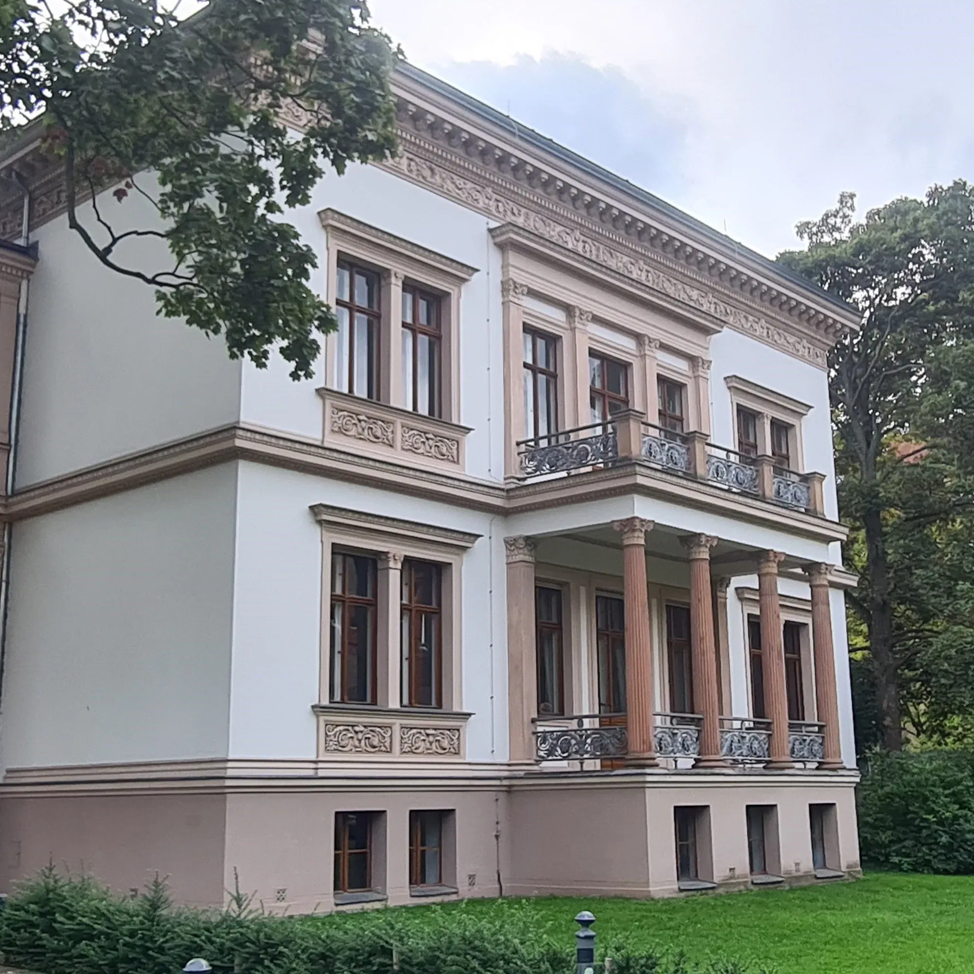 - Das denkmalgeschützte Gebäude wurde 1844 bis 1864 vom Holzhändler Albert Kogge erbaut.