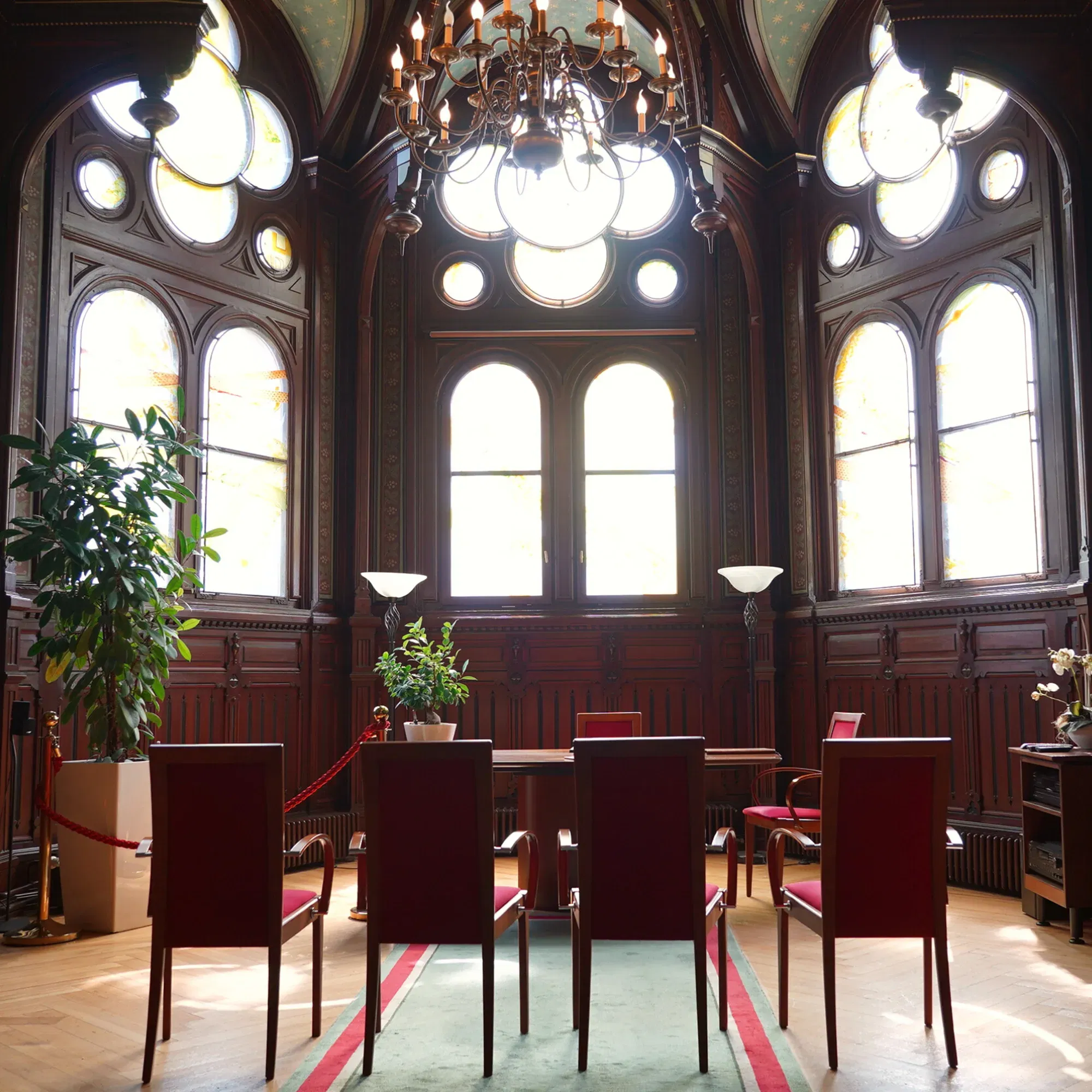 - Im historischen Trauzimmer des Rathauses könnt ihr euch vor maximal 20 Gästen das Jawort geben.