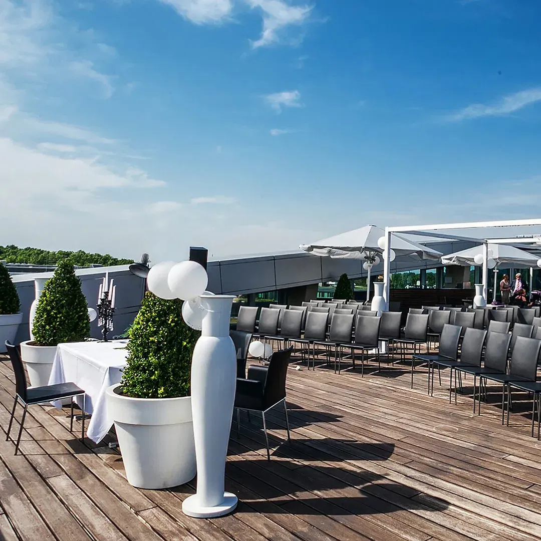 - In einem separaten Raum mit Terrasse könnt ihr einen Sektempfang planen.