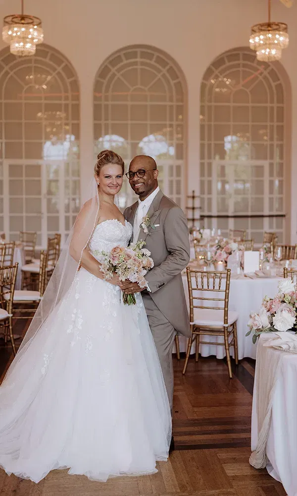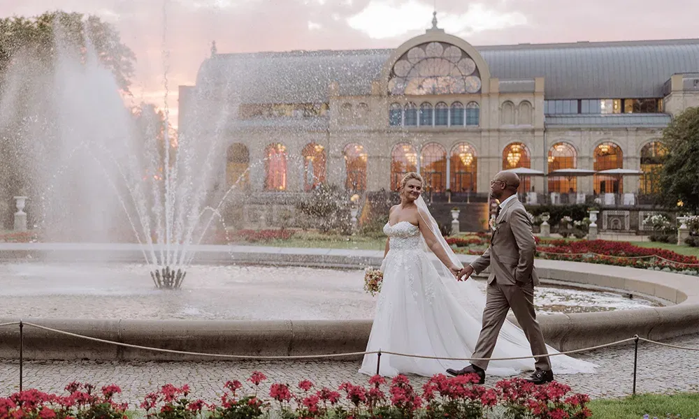 Die Pläne für die große Feier durchkreuzte Corona zwei Mal. Dann erfüllte sich der Kinderwunsch des Paares. So verschob sich das kirchliche Jawort auf vier Jahre nach dem standesamtlichen Ja. Auf die Festlocation kamen Nicol und Stephen durch Freunde, die dort ihre eigene Hochzeit gefeiert hatten. „Bei der Besichtigung der Flora Köln haben wir uns sofort in den perfekten Mix aus modern und romantisch verliebt“, schwärmt Nicol.