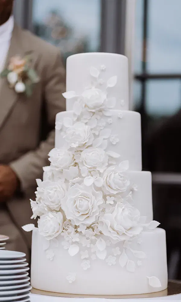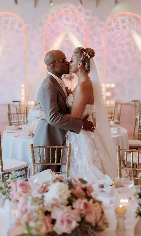 Zur Kaffeezeit am Nachmittag schnitt das Brautpaar die kunstvoll mit Rosen verzierte Torte an. Nach dem Foto-Shooting durften die frisch Angetrauten gemeinsam mit ihrer Tochter zum ersten Mal den prachtvoll geschmückten Dinnersaal betreten – „ein toller Moment!“, erinnert sich Stephen. Während anschließend die Gäste im Saal Platz nahmen, hielten sich die Hochzeiter gemeinsam mit ein paar engen Familienmitgliedern für ihren schwungvollen Einzug zum Auftakt des Dinners bereit. „Zu einem typisch afrikanischen Lied tanzten wir zwischen den Gästen hindurch zu unseren Plätzen – ein Riesenspaß“, schwärmt der Bräutigam.