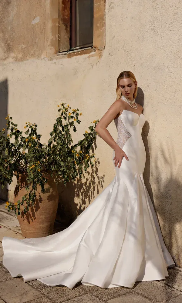 „Eigentlich nicht. Beim Entwerfen der Kollektionen lasse ich mich nicht von einer bestimmten Person inspirieren – meine Inspiration kommt von allen Frauen. Ich beschäftige mich intensiv mit weiblicher Stärke und habe selbst eine Tochter, die ich gern stark sehe. Was meine Hochzeitskleider betrifft, würde ich fast jeden Stil selbst tragen wollen. Ich habe auch nicht ,den perfekten Körper’ oder ,die perfekte Form’, aber ich fühle mich wohl in meinen eigenen Kleidern und weiß, dass es anderen genauso gehen wird.“