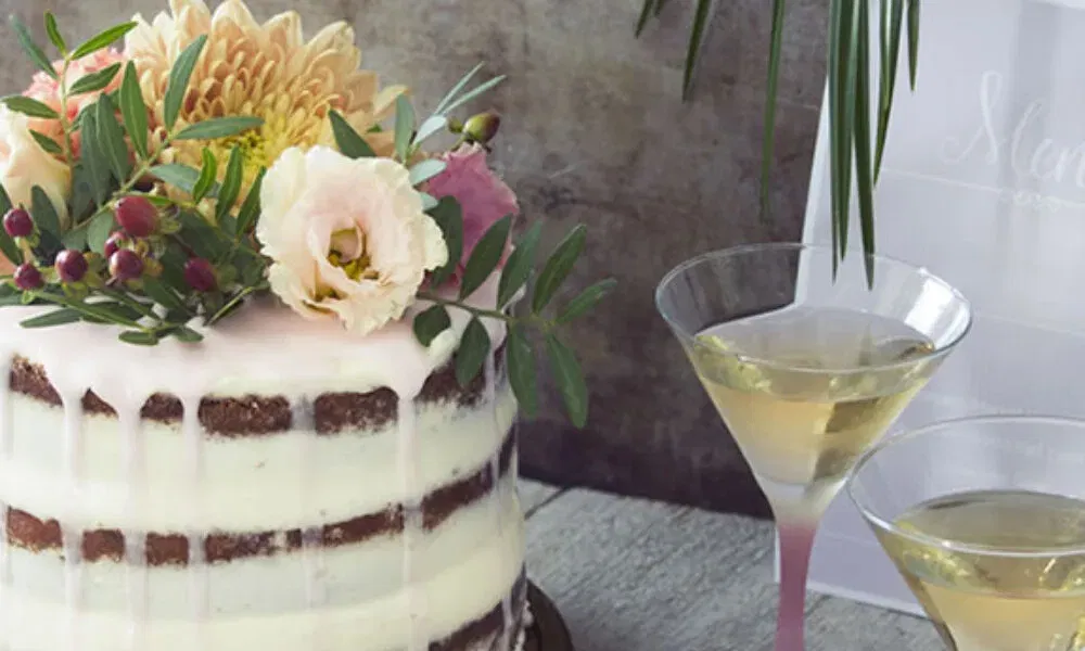 - Zum Schluss die weiße Glasur nach Anweisung erwärmen und in eine Schüssel geben. Wenige Tropfen rosa Farbstoff dazu geben und gut mischen. Die Glasur auf den Kuchen geben und über die Ränder tropfen lassen – so entsteht die angesagte Drip-Drop-Optik. Mit Blumen und Blättern dekorieren.