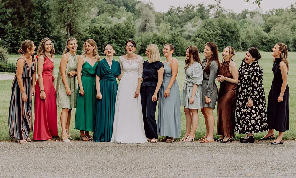 Marias Junggesellinnenabschied startete entspannt. Ihre Freundinnen holten sie am Vormittag ab und gemeinsam starteten sie mit einem Brunch beziehungsweise frühen Mittagessen in einer Bar in der Nähe. „Dort gab es zwei Aperol-Tower für uns. Damit waren wir schon sehr gut eingestimmt“, sagt sie lachend. Weiter ging es mit dem Zug, wo natürlich gleich der erste Sekt geöffnet wurde. Ziel war ein Escape-Room. Weil die Gruppe so groß war, teilten sie sich auf zwei Räume auf – ein witziges, gemeinschaftliches Erlebnis, bei dem alle ihren Spaß hatten. Am Abend ließen sie den Tag ganz gemütlich ausklingen: Bei Benes Eltern wurde gegrillt und der entspannte JGA in familiärer Atmosphäre abgerundet. „Es war einfach total schön“, sagt Maria.