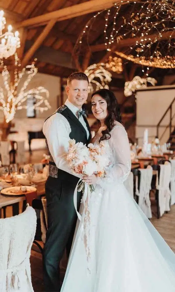 Zu „If you love her” von Forest Blakk zeigten die frisch Vermählten ihren Hochzeitstanz mit Choreografie. „Damit haben wir unsere Gäste ziemlich überrascht, da wir eigentlich nicht so die Tänzer sind“, schmunzeln die beiden. Für ihren kleinen Auftritt hatten sie extra Tanzstunden und einen Crashkurs besucht. Nach dem Eröffnungstanz wurde zu bester Partymusik von DJ Les gefeiert. „Die Stimmung war mega. Es ging bis um vier Uhr“, freut sich das Brautpaar.