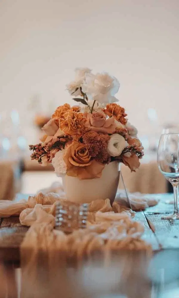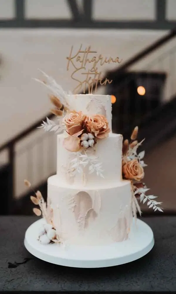 Dekoration: Mira Schabert von Liebesplan gestaltete die komplette Dekoration. „Als Farbschema wählten wir Cremetöne und Rostorange. Ansonsten ließen wir Mira einfach freie Hand“, so Katharina. www.liebes-plan.de