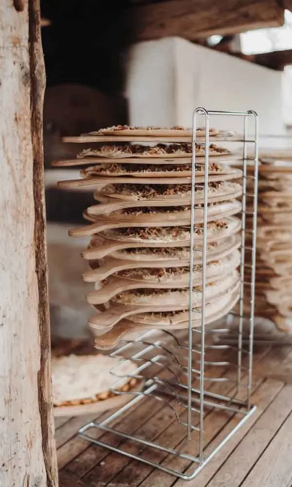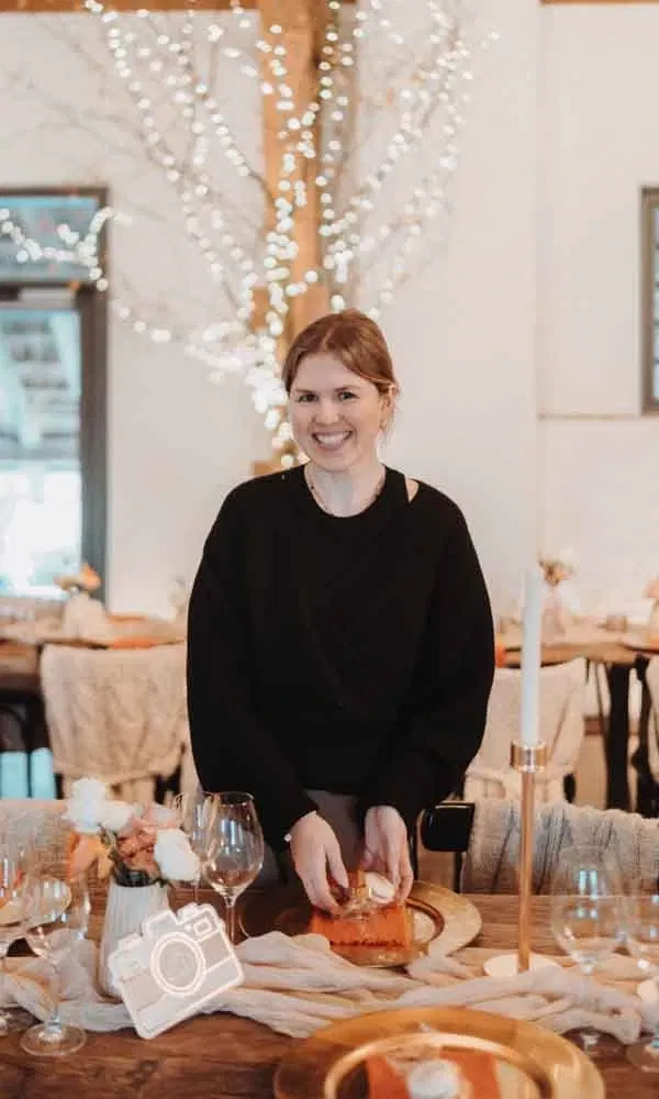 Den Empfang bereicherte Olimpia Casà mit Live-Musik. Dazu gab es Torte für den süßen und Flammkuchen für den herzhaften Genuss. „Unsere dreistöckige Torte hatten wir von ‚Hans liebt Kuchen‘ in Stuttgart-West“, erzählt Katharina. Passend zu ihrem Winterfest hatten die Hochzeiter die Geschmacksrichtungen Bratapfel-Zimt und Zwetschge-Zimt gewählt. „Außerdem wollten wir keine Buttercreme. Deshalb war das eine Mousse-Torte“, berichten die beiden.