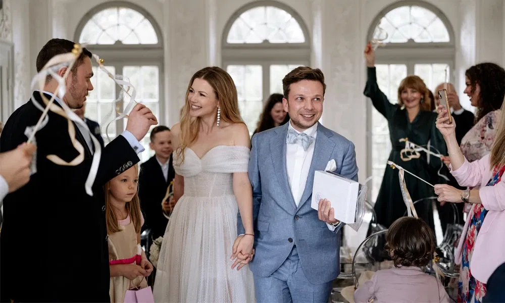 Zu „Take My Breath Away“ von Berlin zog das Brautpaar nach der standesamtlichen Trauung aus – und genau dieses Lied begleitete sie später auch beim Braut- und Bräutigamtanz. Zum ersten Mal hörten Yana und Ilja die Melodie bei einem Theaterstück, das sie gemeinsam besuchten. „Der Song hat uns so berührt, dass für uns sofort klar war: Das wird unser Lied“, erzählen sie. Ein Gänsehautmoment – gleich zweimal an ihrem großen Tag.