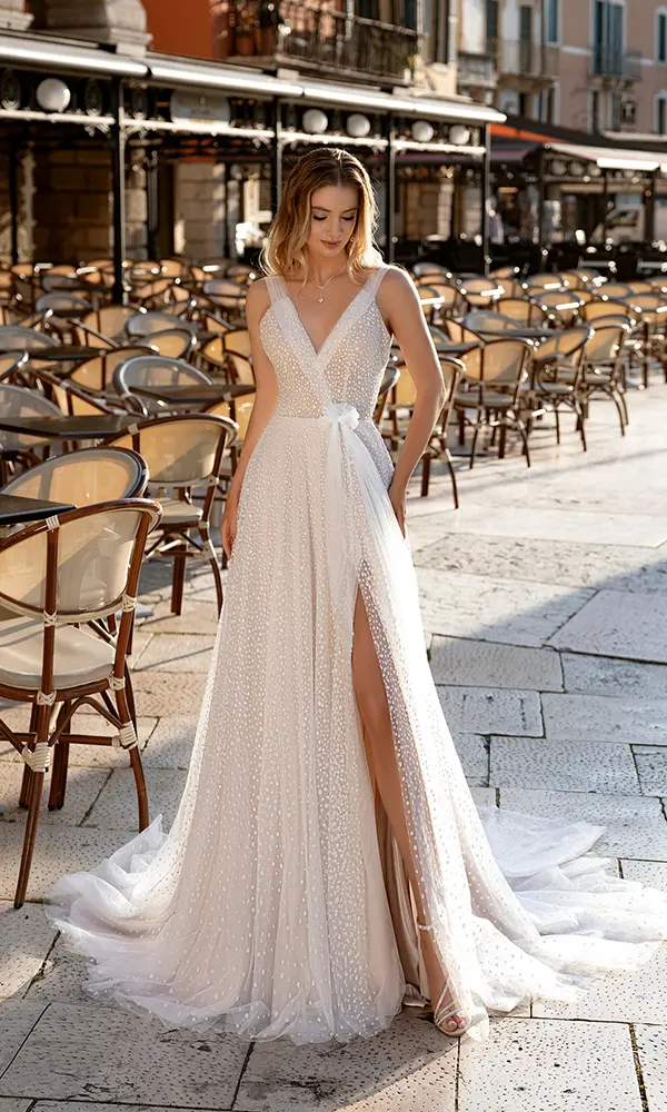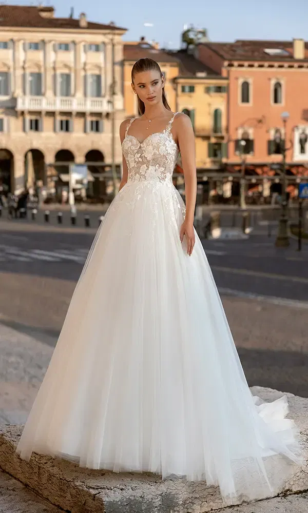 Jeder Look ist erst dann vollendet, wenn jedes Detail stimmt. Deshalb sind diese Kleider, ob einfach oder raffiniert, mit größter Sorgfalt entworfen worden. Der Fokus liegt auf Komfort und tadellose Qualität. So bekommt jede Braut nicht nur ein prachtvolles Kleid, sondern auch ein Stück Handwerkskunst, das sie am großen Tag erstrahlen lässt.
