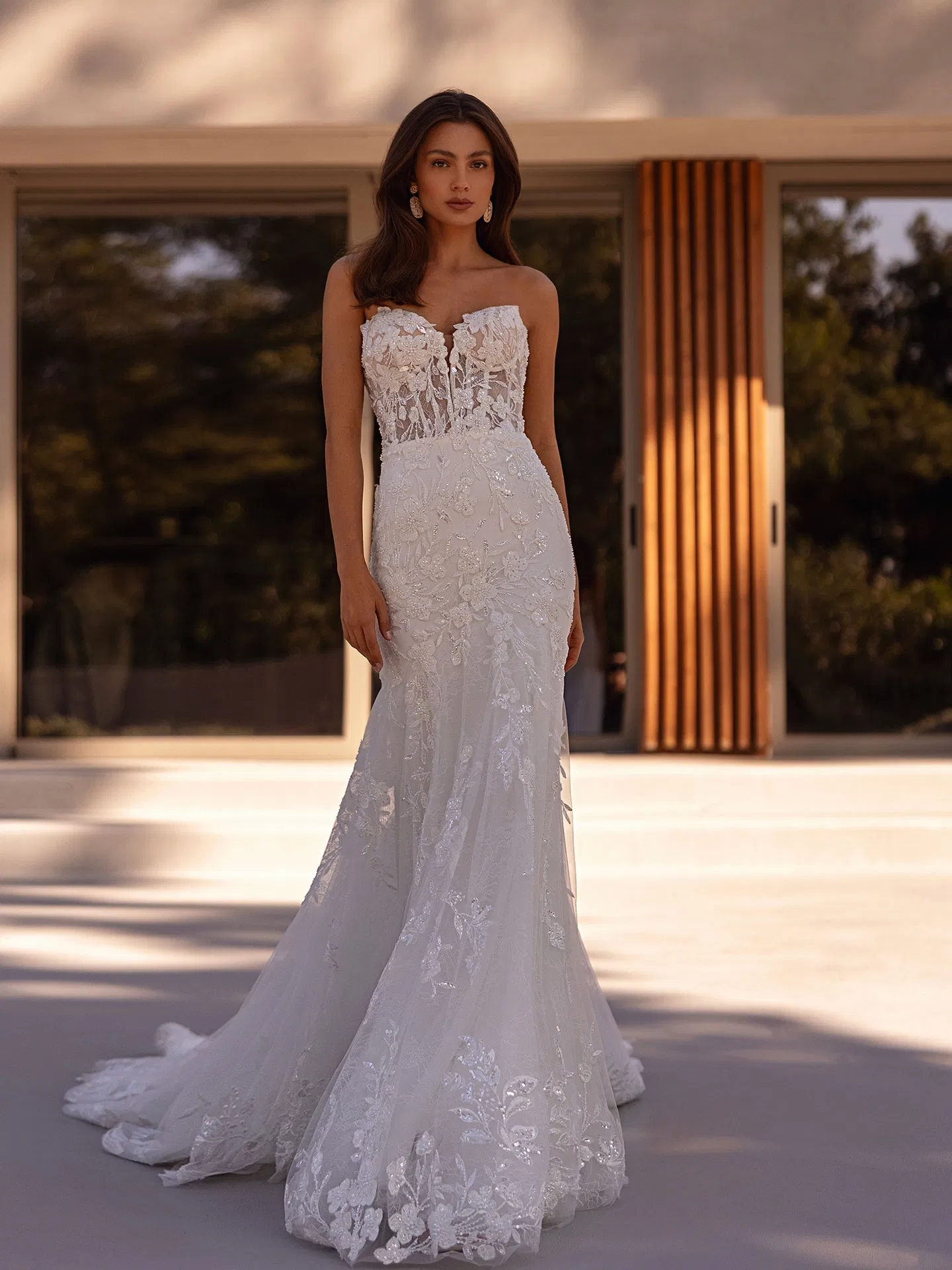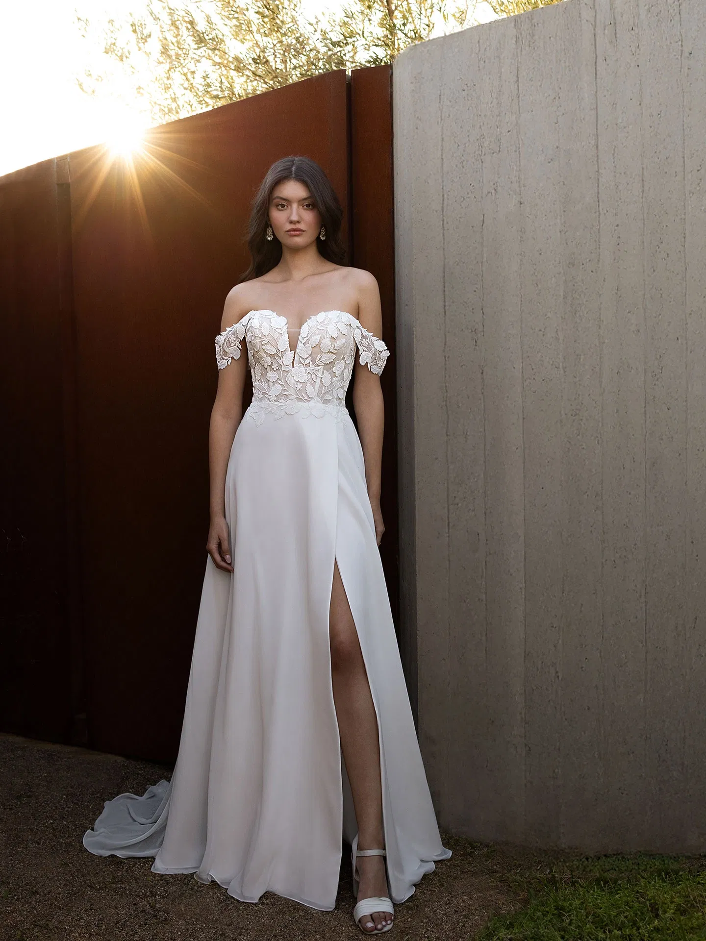 Schlichte Eleganz und feminine Leichtigkeit stehen hier im Fokus. Die Designs verkörpern mühelose Grazie und sind ideal für Bräute, die einen modernen, soften Look bevorzugen.